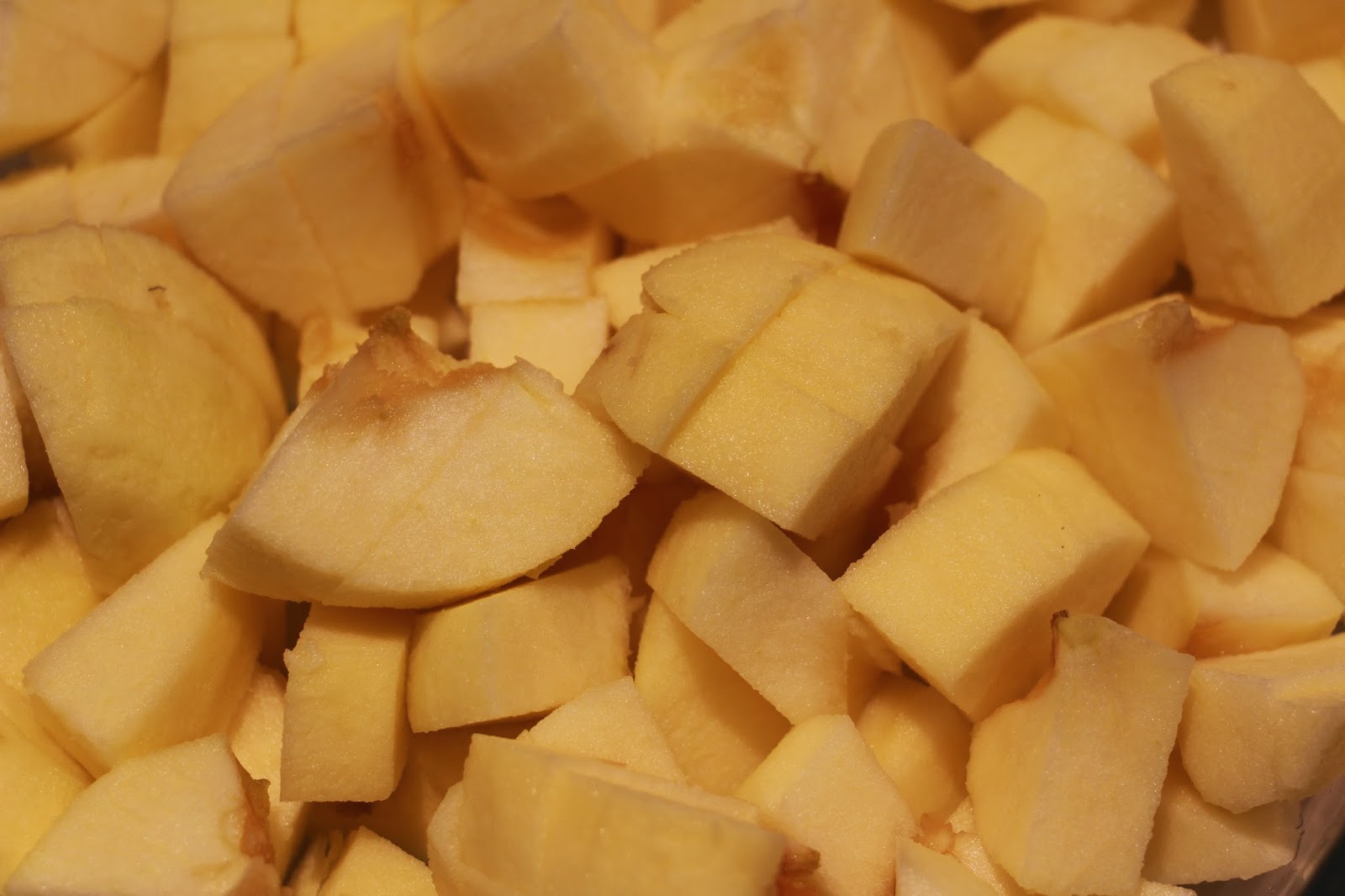 Épluchez les pommes, épépinez les puis coupez les en gros morceaux.