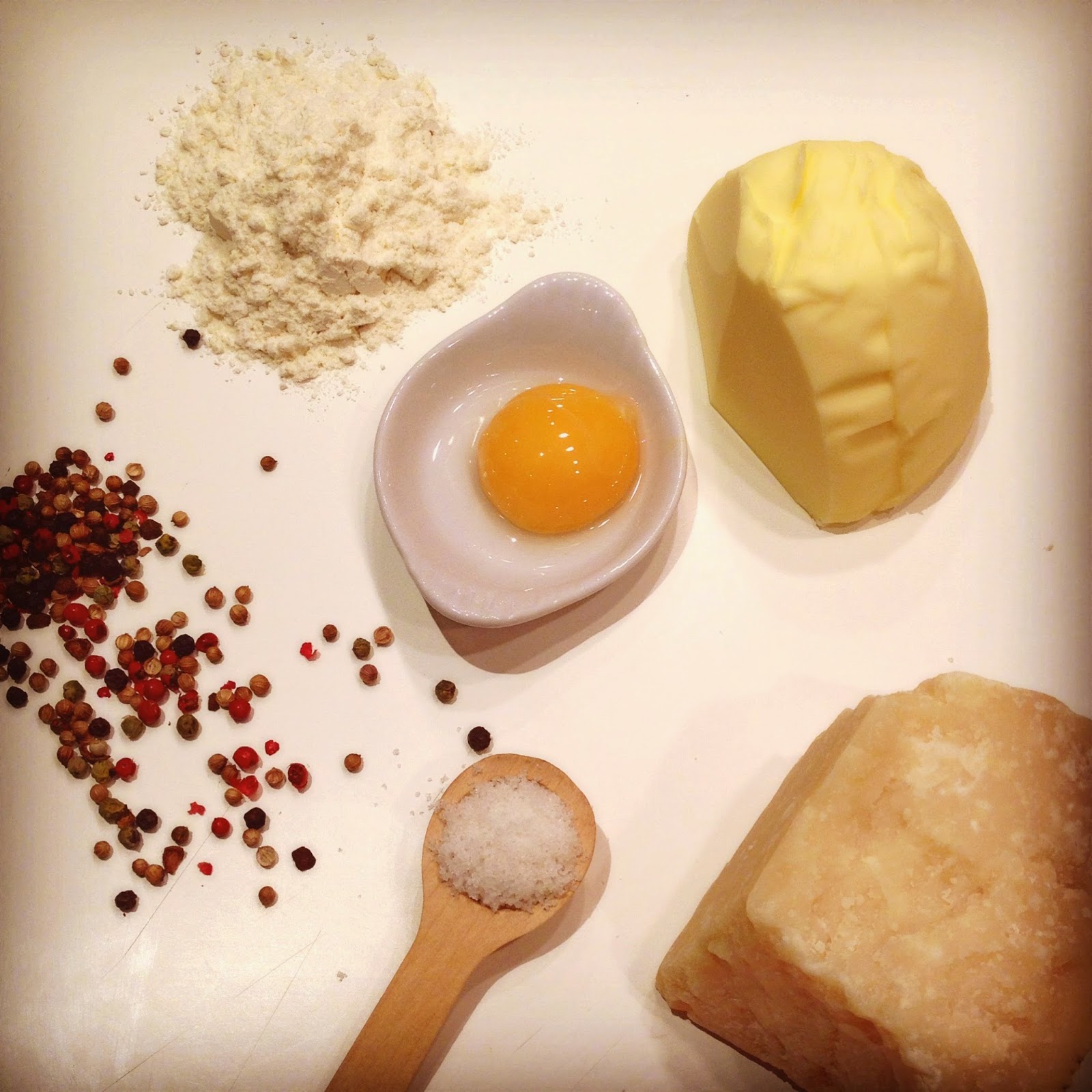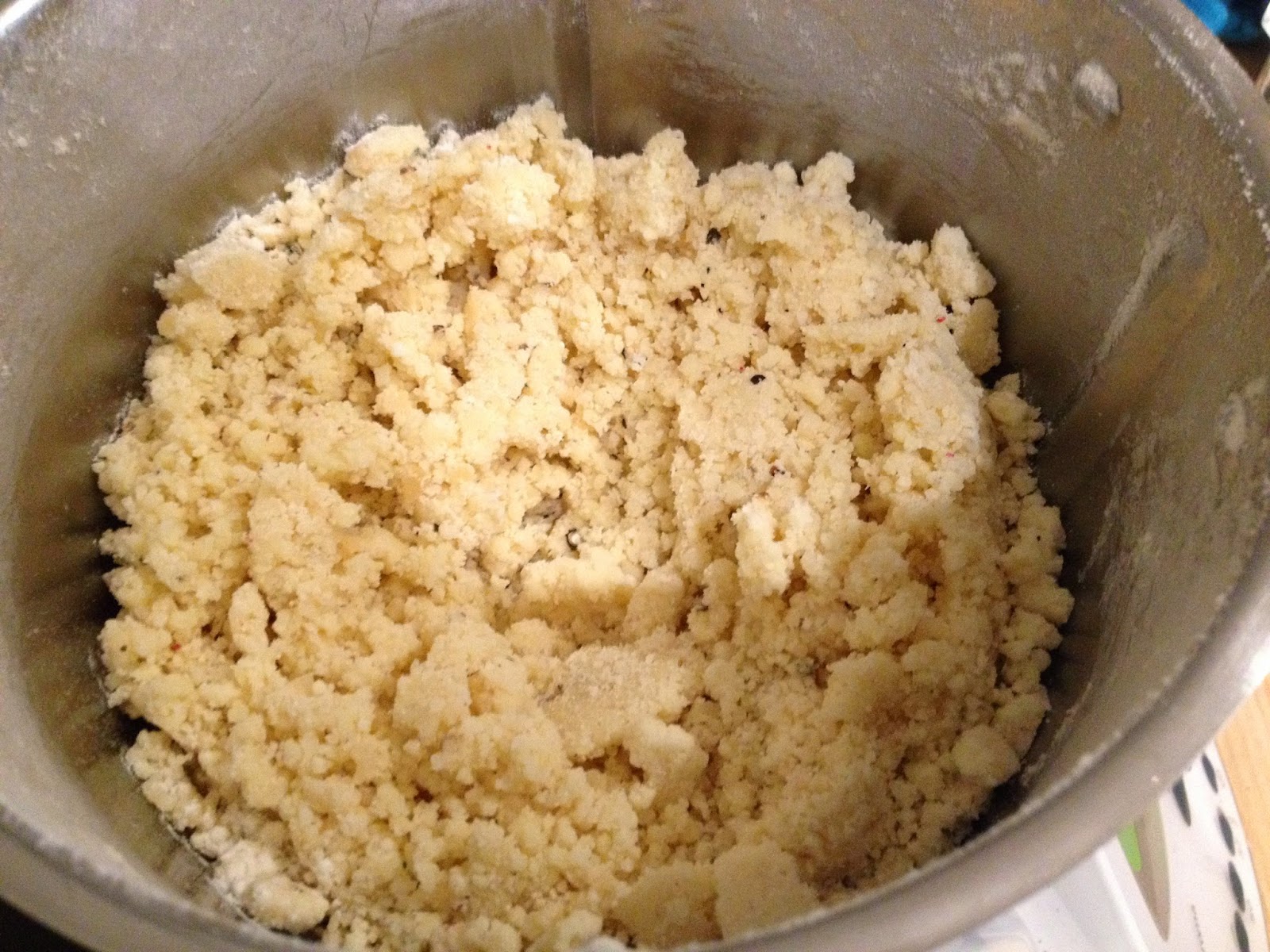 Dans un saladier, mélangez le sel, le poivre, le parmesan, le beurre coupé en petits cubes et la farine. Travaillez le tout à la main jusqu’à ce que le mélange devienne homogène et sableux.
